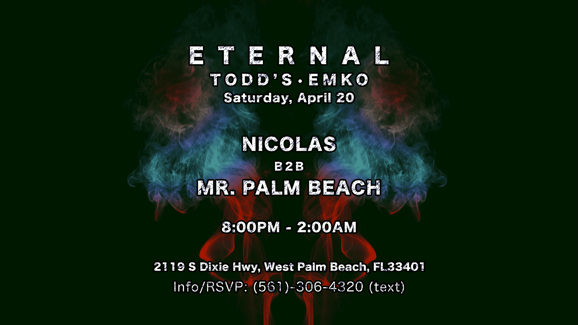 N2S Productions presents ‘Eternal,’ featuring a back to back set with Nicolas and Mr Palm Beach .