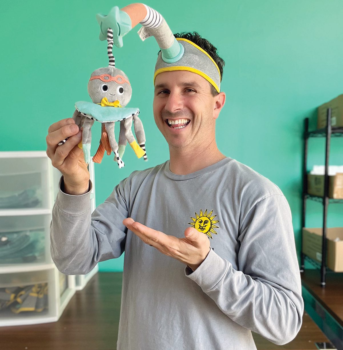 “As dads, there’s just not much on the market,” he says. “A lot of women end up breastfeeding, but there’s not that connection that dad has. When I had my first baby, I was kind of lurking in the background the whole time. … So I think intentionally, dads sometimes tend to be the sillier ones, and they’re looking for other ways to entertain the baby. Sometimes humor or laughter is really the only way we know how to do it.