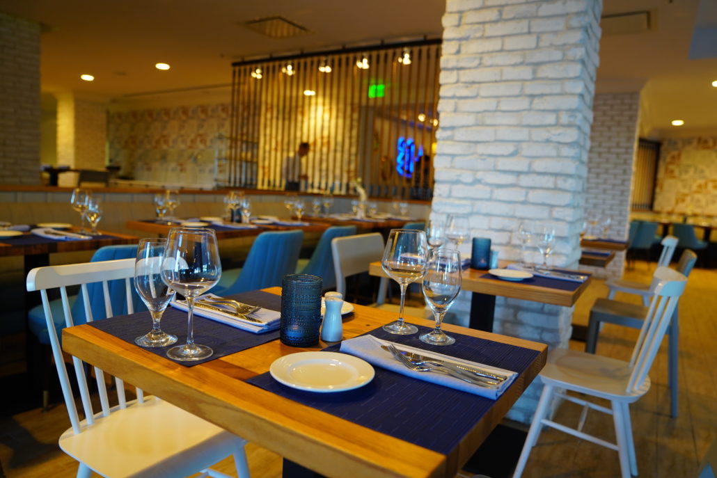 Located inside the Fort Lauderdale Marriott Pompano Beach, the 115-seat restaurant provides a view of both the pool and the ocean. With a light nautical theme, the dining room features ship ropes, blue and tan wall paper, cream tufted seats and navy blue accents throughout.