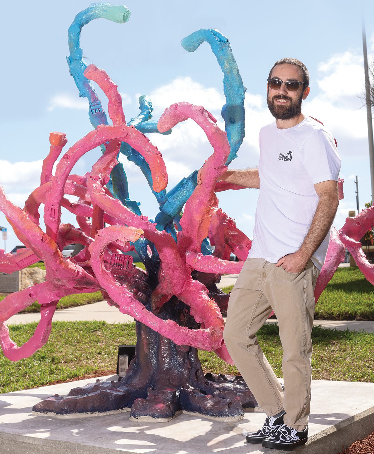 In the mural “Shime,” by Japanese-American artist Juuri, two female figures are blanketed in blooming…