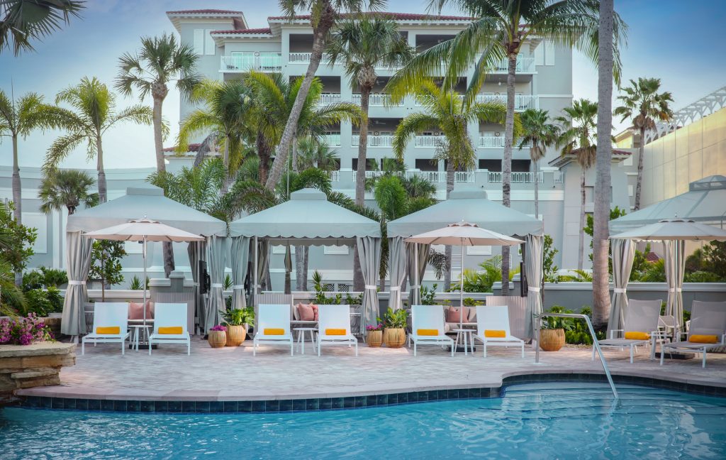 LaPlaya leans into Naples’ serene side, a private paradise where you’ll enjoy beachfront frozen cocktails on a lounger under one of their navy-and-white-striped umbrellas, and then go for a dip in one of the four pools. There’s also a spa and an off-site golf course. Rooms have recently been refreshed, and the upper floor rooms like the Premium Beachfront Gulf Tower King room that I stayed in give you those sweeping Gulf views (which warrant the upgrade), jetted bathtubs and plenty of space to lounge or dine.