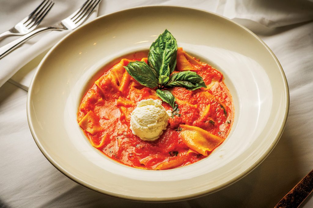 That sense of care and comfort permeates the restaurant, from its alluring supper club vibe and rich wood finishes to the cozy leather banquettes perfect for people-watching and viewing black-and-white photos of owner Alex Dana with famous friends like Frank Sinatra and Tony Bennett. The inviting ambiance sets the stage for a design-forward evening of gastronomy—whether it’s an after-work unwind with sliders and a beer pairing, girls’ night with cocktails and upbeat melodies, a romantic dinner over in-house-crafted pasta and wine, a multigenerational meal centered around saucy classics, or a celebration marked with fresh seafood and prime-aged steaks flown in daily from Chicago.