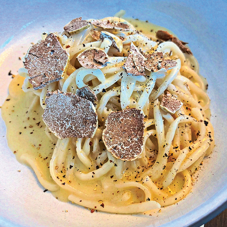 Guests may dine à la carte or explore two tasting journeys: the immersive 15-course Omakase or the nine-course “Not-So-Petit” experience. USDA Prime, Mishima American Wagyu, dry-aged selections, handmade pasta, raw preparations and small thoughtful plates shape a menu appealing to discerning surf and turf connoisseurs alike. Chef James curates his meat selections from various purveyors, sampling their quality with his own offerings’ high standards. “I personally conduct my own taste tests daily for lunch, consuming over a pound of beef to find those worthy of our menu,” he boasts.