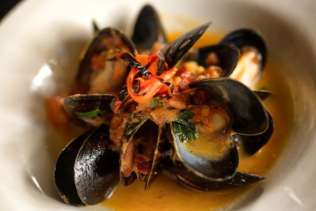 That means tapas like cherry-smoked scallop with porcini panna cotta and mussels with charred Fresno chilies, grapefruit and guanciale, pastas like oxtail gnudi with horseradish brown butter, and big plates like roasted Lake Meadows guinea hen with fig mostarda, baby turnips, Swiss chard, lavender and guineajus.