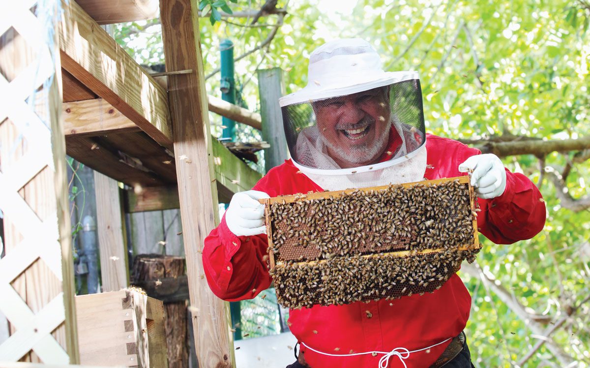Known as Willie the Bee Man—if you’ve attended the Wick or Palm Beach Dramaworks, you’ve seen his playbill ads—Sklaroff was working as a kindergarten teacher when he began removing unwanted hives from clients’ houses. Eventually, the income he earned from bee removal superseded his teachers’ salary, and he’s been running his business full-time for the past 15 years. An avuncular advocate for bee education, he speaks to schools about his work and the importance of nature’s pollinators, sometimes dressed in honeybee regalia. For this story, Boca readers are his pupils.