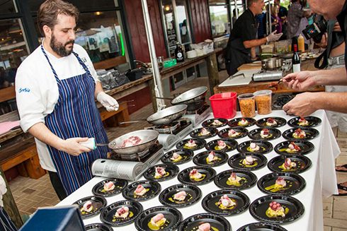 There were four semifinal rounds, so those four winners and 2014 winner Chef Eugenio Santucci, from the delightful Santucci Ristorante on Clematis (610 Clematis St., West Palm Beach, 561/337-2532), will face off at the dinner. That means Chef Santucci will be joined by Chef Blake Malatesta (pictured; 50 Ocean, 50 S. Ocean Blvd., Delray Beach), Chef Cassel from Hullabaloo (517 Clematis, West Palm Beach), Chef Clay Carnes from The Grille in Wellington (12300 S. Shore Blvd., Wellington), and Chef Eric Grutka of Ian’s Tropical Grill (2875 SE Ocean Blvd., Stuart).