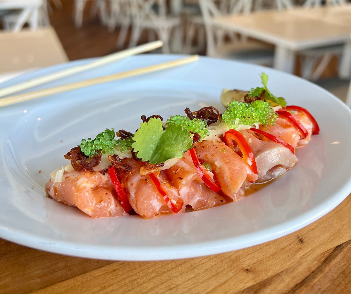 The new sushi program is thanks to new chef Katt Dreyfuss who has worked in Michelin-starred kitchens and most recently competed and won Food Network’s “Guy’s Grocery Games: Beat the Judges.” The menu, available for now only Thursday through Sunday for lunch and dinner, will expand in the coming months. For now it launched with dishes like the cucumber kimchi bowl, tuna poke bowl, wahoo tiradito, salmon crudo, ceviche roll and spicy tuna roll.