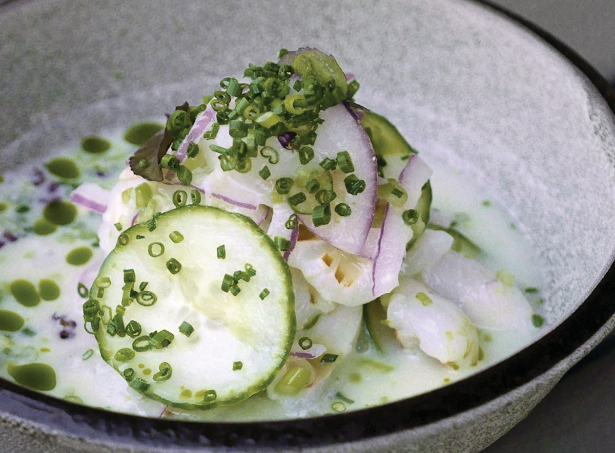 While the lychee fruit is indispensable, his take on the leche de tigre marinade, which is vegan and gluten-free, is truly the star. The sweet and spicy sauce with a tropical flair is made by pressing fresh coconut, using cilantro stems (instead of the leaves, which may be too overpowering), Thai chili to counterbalance the sweetness, thinly sliced red onions first bathed in ice water to lessen their pungency, lime juice and sea salt from local purveyor Palm Beach Salt Co.