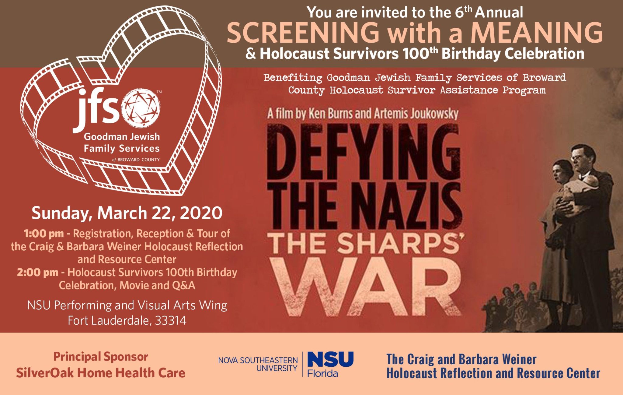This movie is directed Ken Burns and Artemis Joukowsky and narrated by Marina Goldman and Tom Hanks. In addition, we will be celebrating Holocaust survivors in Broward County who will turn 100 years old in 2020 (and a few who will celebrate their 100 birthdays).