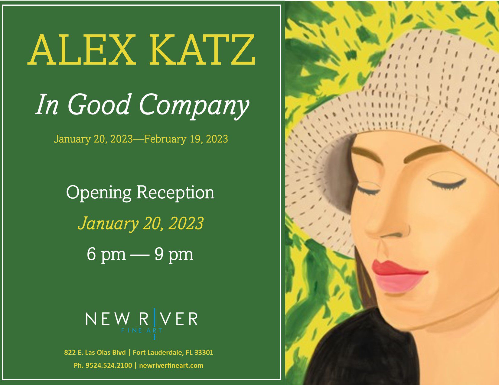 In Good Company features both new prints and a host of works from Katzs archives, stated Lisa Burgess, President of New River Fine Art. His iconic style, stripped of all but the most essential elements, was once criticized as too simplistic but is now being reexamined and finding new appreciation among critics in light of his Guggenheim retrospective.