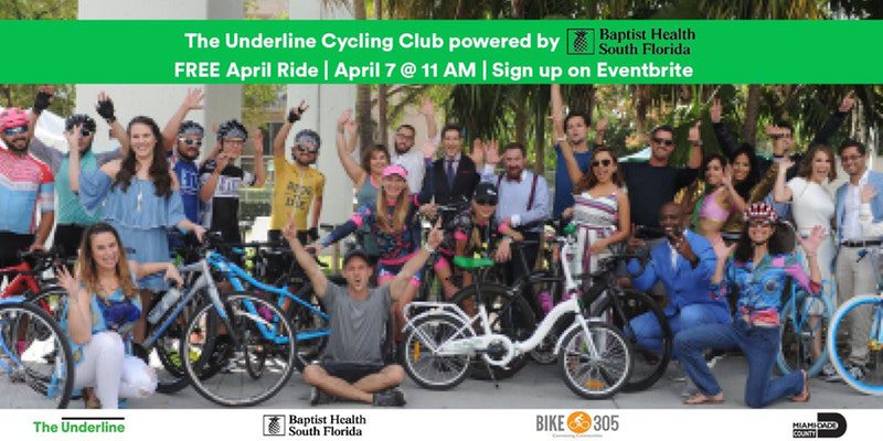 FREE Annual Bike 305 Bike The Underline with The Underline Cycling Club powered by Baptist Health South Florida, Saturday April 7 at 11AM.