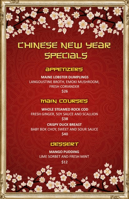 The lively dinner hotspot will transform to an Asian theme of live dancers, artists, dragons, DJs on deck and a Chinese-inspired specials menu by Executive Chef Philippe Ruiz, which includes Maine Lobster Dumplings with langoustine broth, emoki mushroom, and fresh coriander, entrees of Whole Steamed Rock Cod with fresh ginger, soy sauce and scallions, Crispy Duck Breast with baby bok choy and sweet and sour sauce, and Mago Pudding with lime sorbet and fresh mint for dessert.