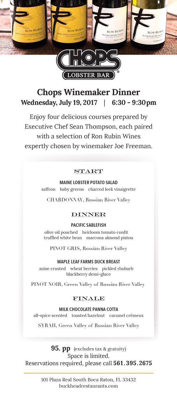 Chops Lobster Bar Wine Dinner featuring Ron Rubin Winery