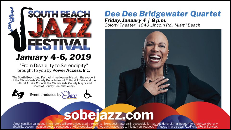 Dee Dee Bridgewater Quartet | Friday, January 4th 2019 | 8:00 pm | The Colony Theatre Miami Beach.