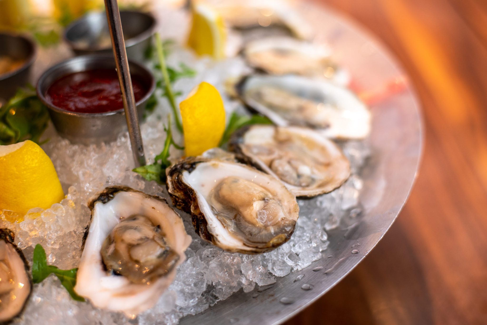 - A Seafood Tower with six oysters, four jumbo shrimp, the signature Naked Crab ceviche, an array of condiments and Meyer lemon (MP)