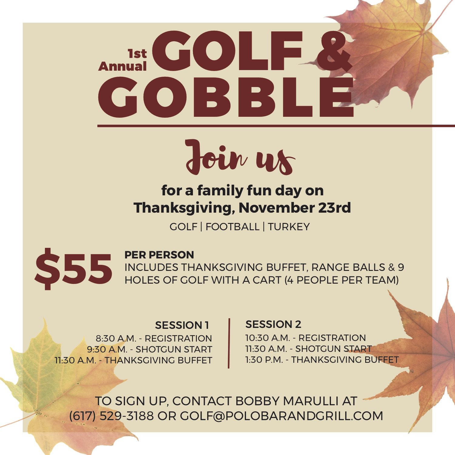 Polo Bar & Grill is celebrating Thanksgiving with its 1st Annual Gold & Gobble. Join us for a day of golf, football, turkey and more on Thanksgiving Day, November 23, 2017.
