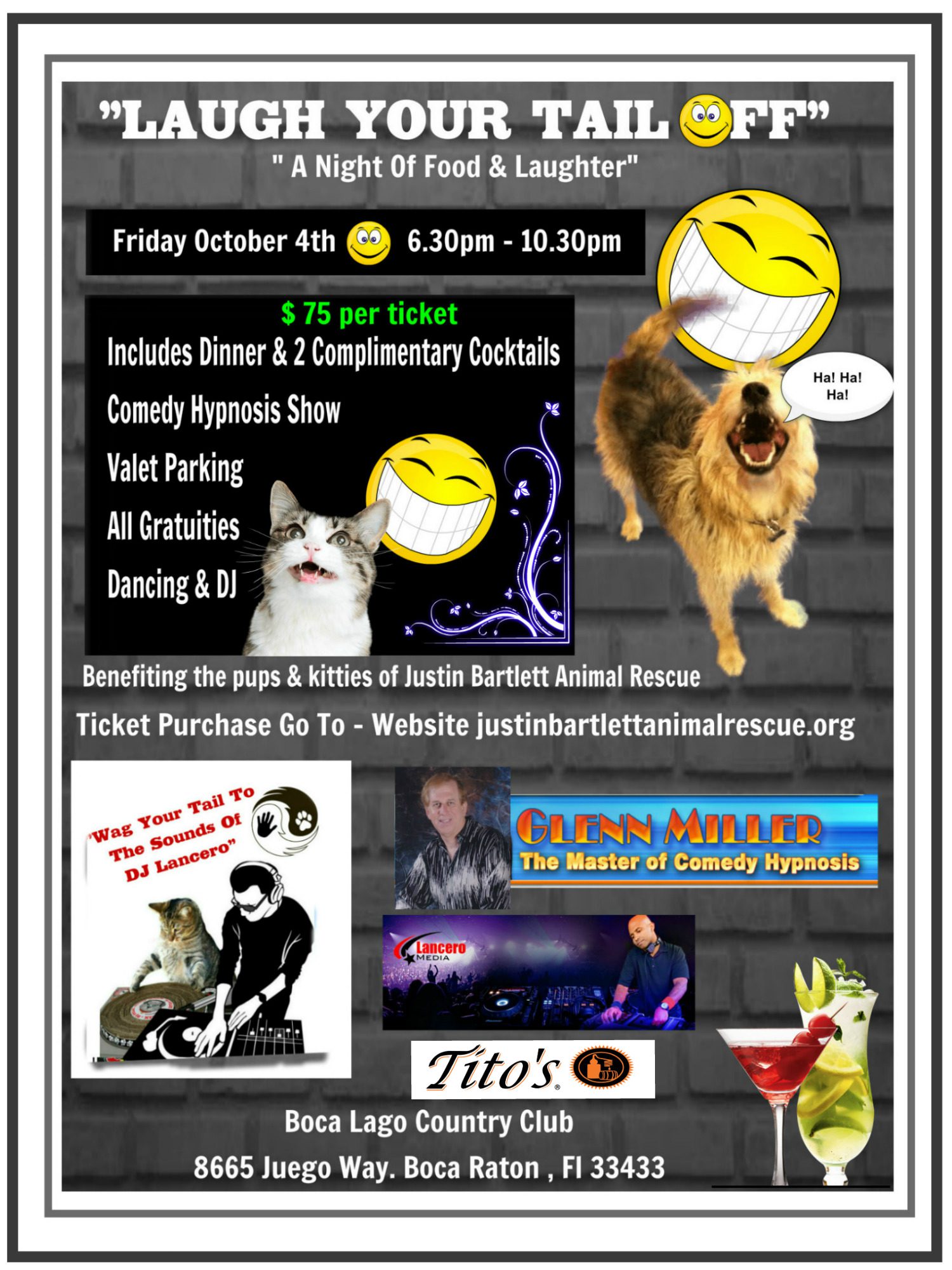 ‘Boy! I needed that tonight.’ Well, look no further! Grab a friend and join us for a night you won’t forget while helping the pups & kitties of Justin Bartlett Animal Rescue. We say that’s a Win Win All The Way.!!! GO TO OUR WEBSITE justinbartlettanimalrescue.org for more details and ticket purchase