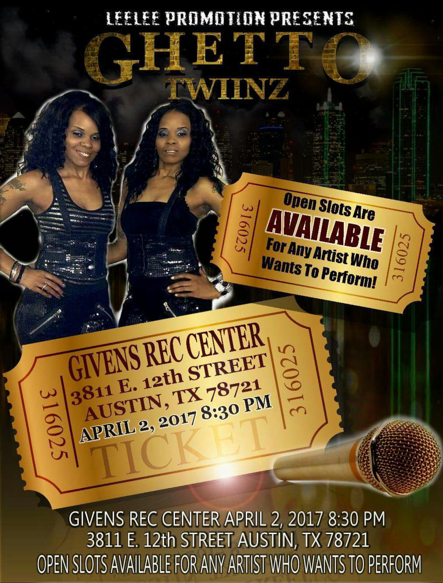 Come out and join Ghetto Twiinz Live In Concert April 2, 2017 at Givens Recreation Center in the Gym at 8:30 PM.
