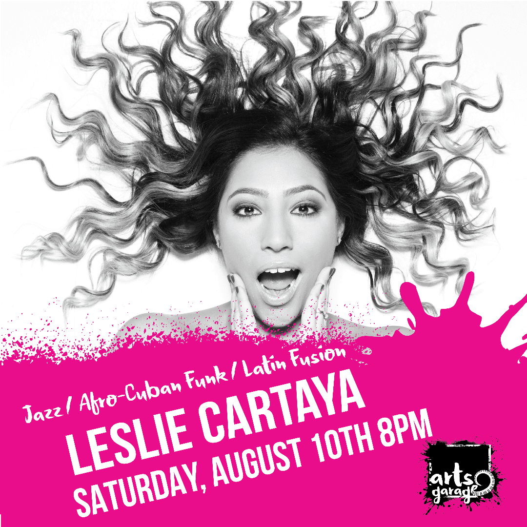 Saturday August 10 at 8: Arts Garage presents Leslie Cartaya. Traditional Cuban music runs in her veins and jazz and American funk have shaped her artistic personality. Leslie admits to have discovered traditional Cuban and Brazilian music as she reminisces about her family, in particular her cousins. They were the first to teach her nursery rhymes and accompany her on the guitar while she sang.
