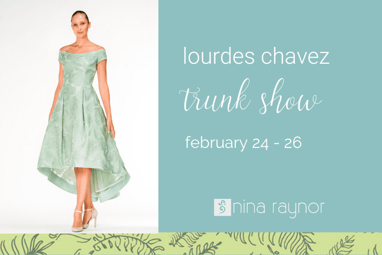 Come see the spring 22 collection of Lourdes Chavez. Lourdes is known for exquisite fabrications and classic styles from day to evening. All made in the USA. This is also an excellent show for mothers of the bride or groom, or anyone with an upcoming special occasion. No appointment necessary.