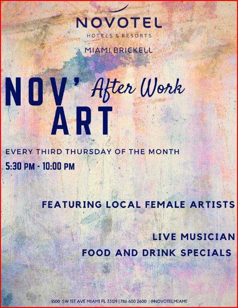 Join us every third Thursday of the month for our Nov’ Art after work event! This Thursday, January 16 enjoy artwork from local female artists with live music, complementary bites and Fun Wine® designed by renowned artist Miguel Paredes.