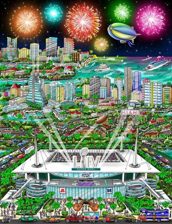 Charles Fazzino, Officially Licensed Artist of Super Bowl LIV, will premiere the Sports Commemorative Collection at Wentworth Gallery at the Hard Rock Hotel & Casino and two other gallery locations in South Florida. This newly-curated Collection will consist of original artworks, limited-edition prints on paper and aluminum, and other fine art collectibles. The Collection is currently on exhibition & available for acquisition. The Officially Licensed NFL commemorative artwork for Super Bowl LIV — including Limited-edition Prints and Posters as well as the opportunity to meet the world-renowned Artist are do not miss events in South Florida. The Artist will be making live appearances with the Collection on Saturday, January 25th, 2020 from 6-9pm at Wentworth Gallery at Boca Raton Town Center Mall, Sunday, January 26th from 2-4pm at Wentworth Gallery at Las Olas Fort Lauderdale and Friday, January 31st, 2020 from 6-9pm at Wentworth Gallery at Seminole Hard Rock Hotel & Casino Hollywood. All receptions are complimentary and open to the public, however RSVPs are requested. Visit www.wentworthgallery.com for more info.