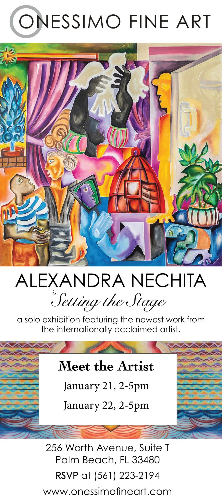 Onessimo Fine Art, Palm Beachs premier fine art gallery is proud to announce its presentation of the ground-breaking exhibition Alexandra Nechita: Setting the Stage. This extraordinary collection of new works by internationally renowned celebrity & visual artist Alexandra Nechita, include her renowned and magnificent sculptures and will be on exhibition & available for acquisition at the gallery in its limited engagement beginning Sunday, January 15th, 2023 and extending through Tuesday, January 31, 2023.Two not-to-be missed receptions with the Artist in attendance have been announced: Saturday, January 21 from 2-5 pm and Sunday, January 22 from 2-5 pm. The Collection is on exhibition and available for acquisition.All events are complimentary and open to the public; however RSVPs are strongly suggested at 561-223-2194 or via Eventbrite. Visit www.onessimofineart.com for more info. Private Viewings & Commissions available as well. Private & Virtual Appointments Available Upon Request. Onessimo Fine Art is located at 256 Worth Avenue in Palm Beach.