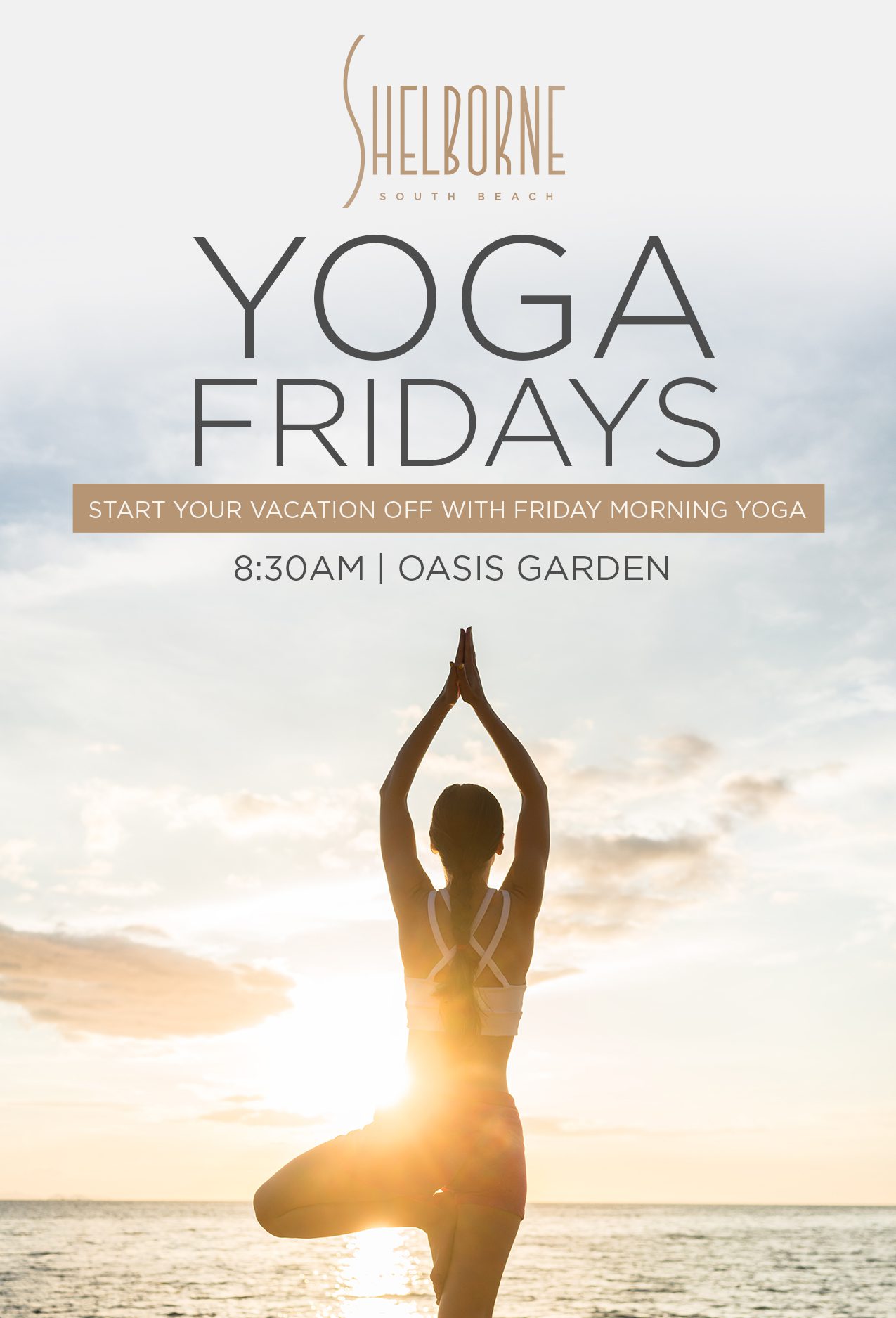 Start your vacation off right with Friday morning yoga at the Shelborne South Beach. Taking place from 8:30-9:30 a.m. every Friday in the Oasis Garden, which is just steps away from the beach, this class is the perfect way to get your zen on.