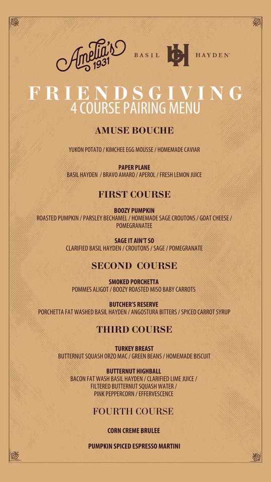 Celebrate Friendsgiving with our 2nd annual Amelia's x Basil Hayden 4-course pairing dinner! Crafted by...
