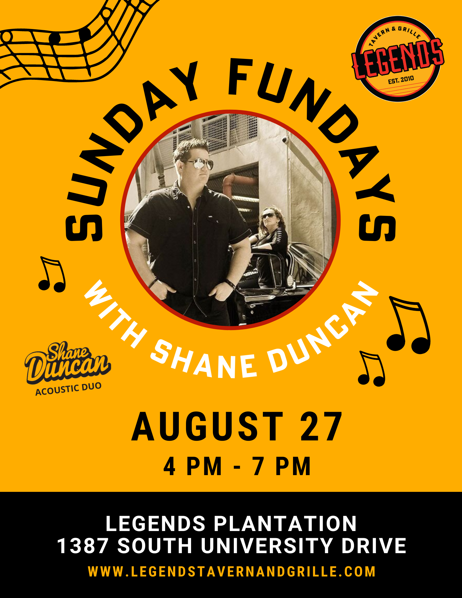 Kick-off Sunday Funday with Shane Duncan Acoustic Duo from 4 PM to 7 PM at...
