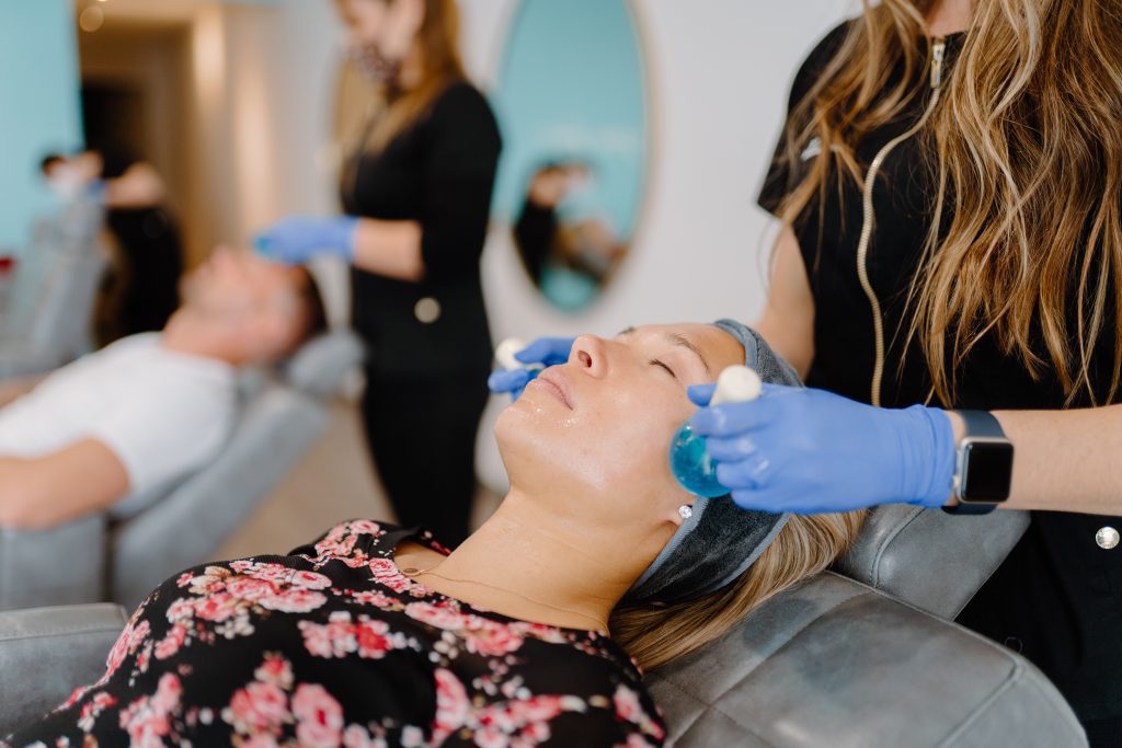 Each treatment is tailored to the client’s skin needs, utilizing Facialworks’ exclusive skincare products inspired by the ocean and incorporating botanical ingredients. Licensed estheticians, skilled in working with a variety of skin types and conditions, perform all facials. The entire experience is highly curated and personalized. Treatments include a deep sonic cleanse, gentle exfoliation, and a mask, combined with Facialworks’ signature massage techniques and Face Ice cryo wands. Every session ends with a hyperbaric oxygen infusion of Facialworks’ Love Ocean serum, a powerful antioxidant blend that hydrates and rejuvenates the skin.