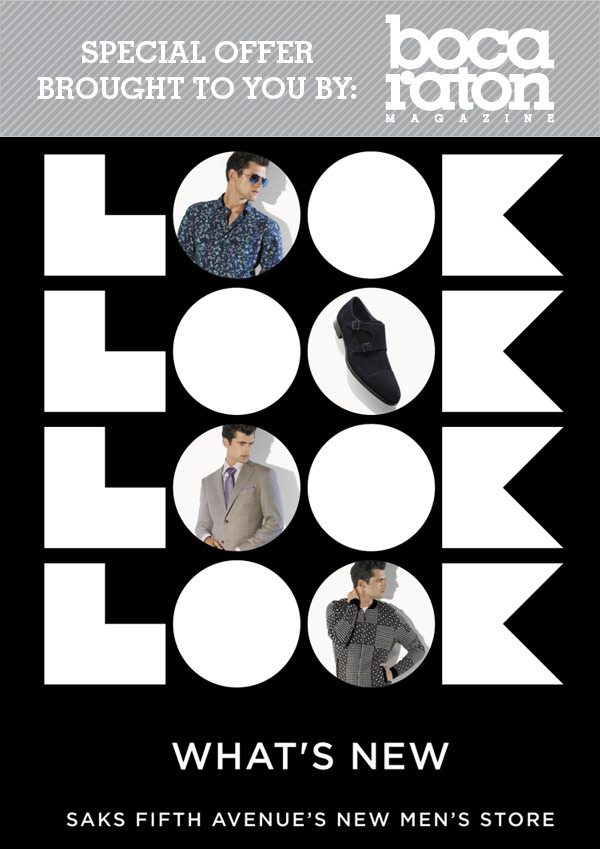 Saks at Town Center at Boca Raton is holding the grand opening of its men’s store Thursday, Nov. 21 – and we’re the official media sponsors. Celebrate with us during a night of fashion, small bites and cocktails. RSVP by emailing RSVP@bocamag.com.