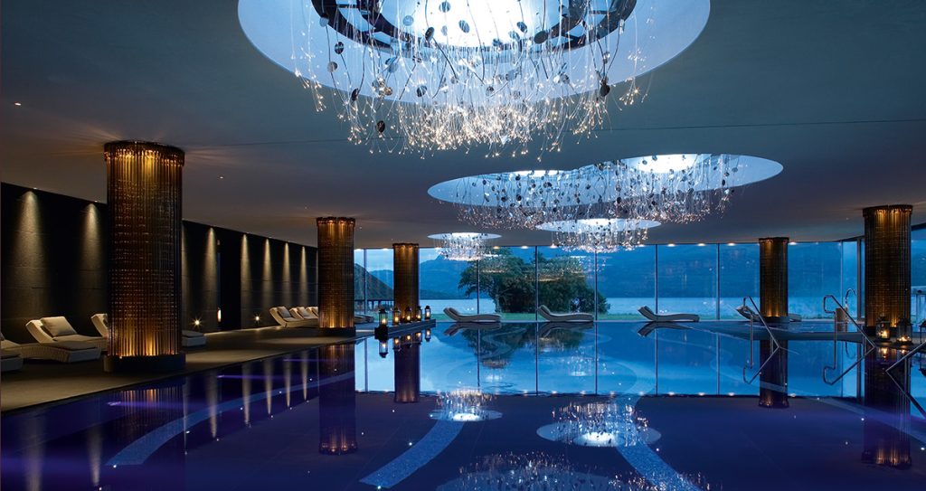 With vistas like these, it’s worth splurging on a lake-view room, which boasts a contemporary aesthetic drenched in leather and velvets, super king-sized beds and private balconies. The heart of the resort is the 50,000-square-foot ESPA, and I looked forward to zipping down the glass elevator in my plush robe to soak in the spa retreat’s warm, bubbling waters in between stints in the steam room and sauna. Understandably, a popular gathering spot is the outdoor infinity pool, which capitalizes on those placid lake and mountain vistas.