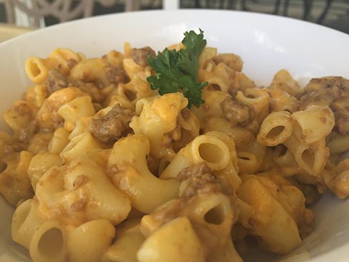 Quinoa Mac & Cheese with Meatless Meat