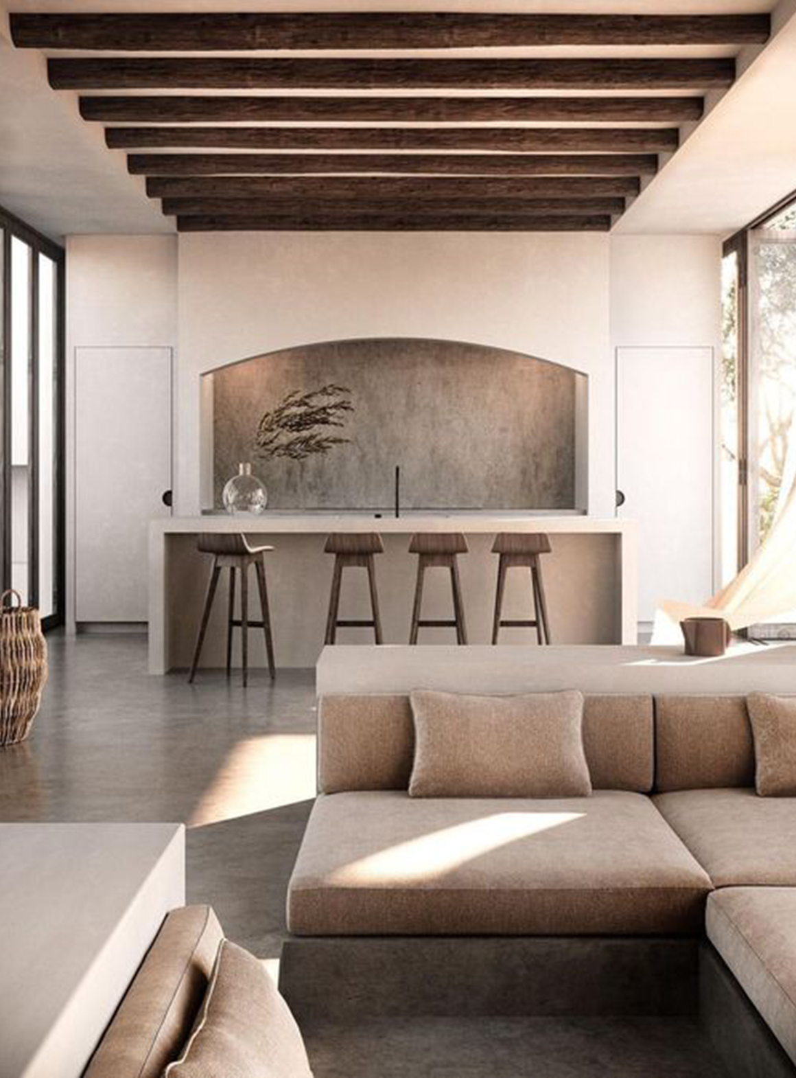 As a boutique retailer and furniture studio, Iron & Oak Home leans into the materials in its name as foundations for its owners’ Mediterranean- and California-inspired aesthetic. Unlike Florida coastal design, which is commonly found elsewhere—think blues and greens, flowers and nautical imagery—Iron & Oak’s selections are rooted in organic simplicity married to a contemporary cool. “I love the California coastal aesthetic,” Giraldi says. “It is more natural and easy to incorporate into almost any décor, with neutral, reclaimed wood, and recycled, craftsman-made furnishings.