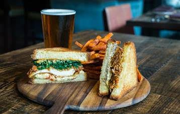 California chef and TV toque Eric Greenspan’s masterwork is the crispy fried chicken sandwich, a slab of crispy clucker on challah bread slathered with pimento cheese, slow-cooked greens, pickles and spicy mayo. L.A. chef and pork maven Ben Ford has come up with a pulled pork grilled cheese sammie that packs barbecued pork, gouda and pickled peppers on Texas toast.