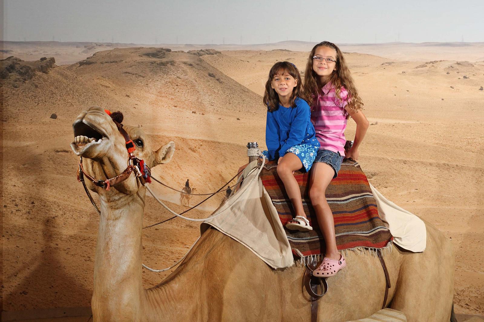 Highlights of Lost Egypt include a real human mummy and animal mummies, an interactive field site area and a colorful replica of a life-size kneeling camel that visitors can climb into the saddle for a photo—your kids will love that!