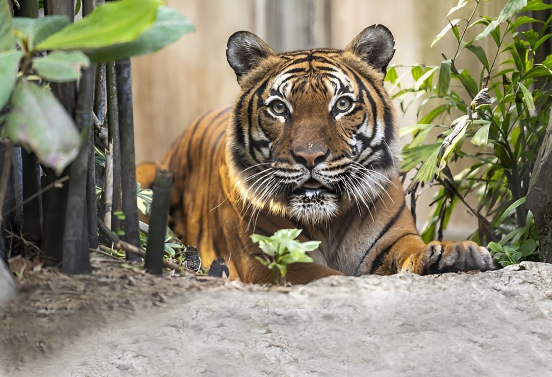 The Palm Beach Zoo shared that “Olan is adjusting very well, and his friendly and fun disposition was evident on day one. Guests can see Olan playing, enjoying enrichment, and sharing space between the Tiger Forest and Tiger Falls habitats.”
