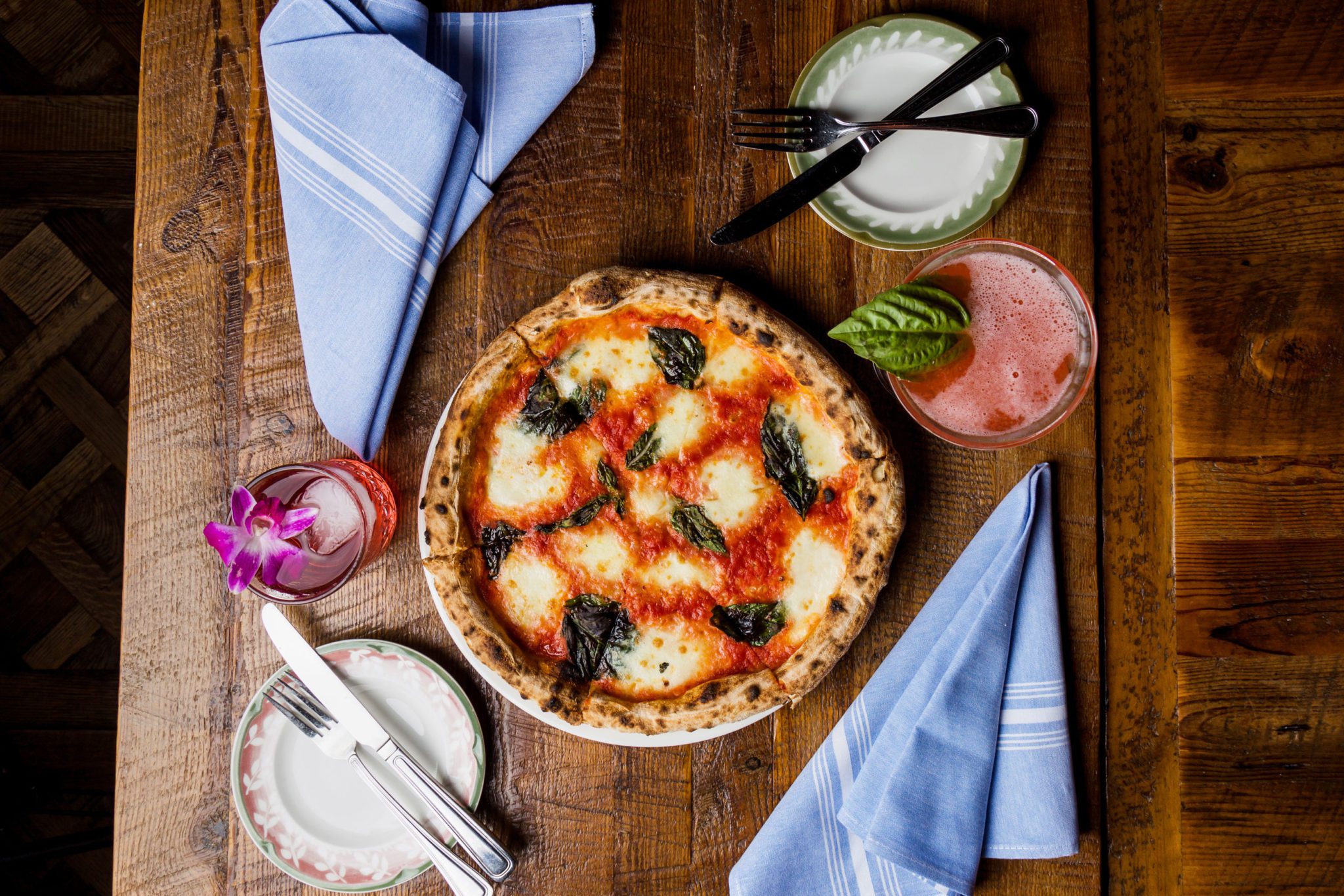 Elisabetta’s, 32 East Atlantic Avenue, Delray Beach (561/560-6699) and 185 Banyan Boulevard, West Palm Beach (561/342-6699); https://www.elisabettas.com/home. Offering 14 different pizzas (nine red, five white) including this Margherita Pizza (pictured; $15) with fior di latte, basil, EVOO, sea salt.