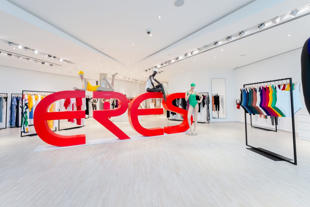 ERES, the chic French brand known for its swimwear, lingerie, and activewear, has an eye-catching pop-up until Jan. 31 featuring its newest collections in their entirety. The refined space showcases a giant logo in red, minimalist furniture and light walls shining the color palette of studio director Marie-Paule Minchelli’s creations.