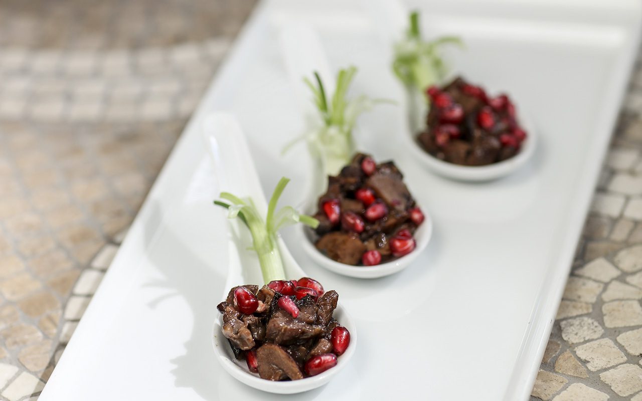 This pomegranate lamb shank recipe comes to us from Executive Chef Patrick Duffy, who oversees the glatt kosher kitchen at The Addison. We asked him to make us a recipe that would be suitable for both Passover and Easter, and this is what he came up with. (It is divine.)