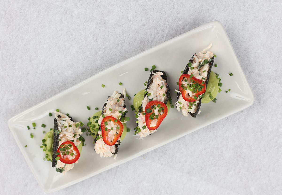 The small plates here are easily shareable. We started with the Hamachi Ponzu ($19), plump slices of tender Japanese yellowtail that weren’t overly marinated but had a slight refreshing citrus undertone and paired delightfully with paper-thin slices of spicy pineapple. The king crab tacos ($28) came out next. Mini nori shells were stuffed with crab that was not overly saucy and let the crab’s flavor take center stage.