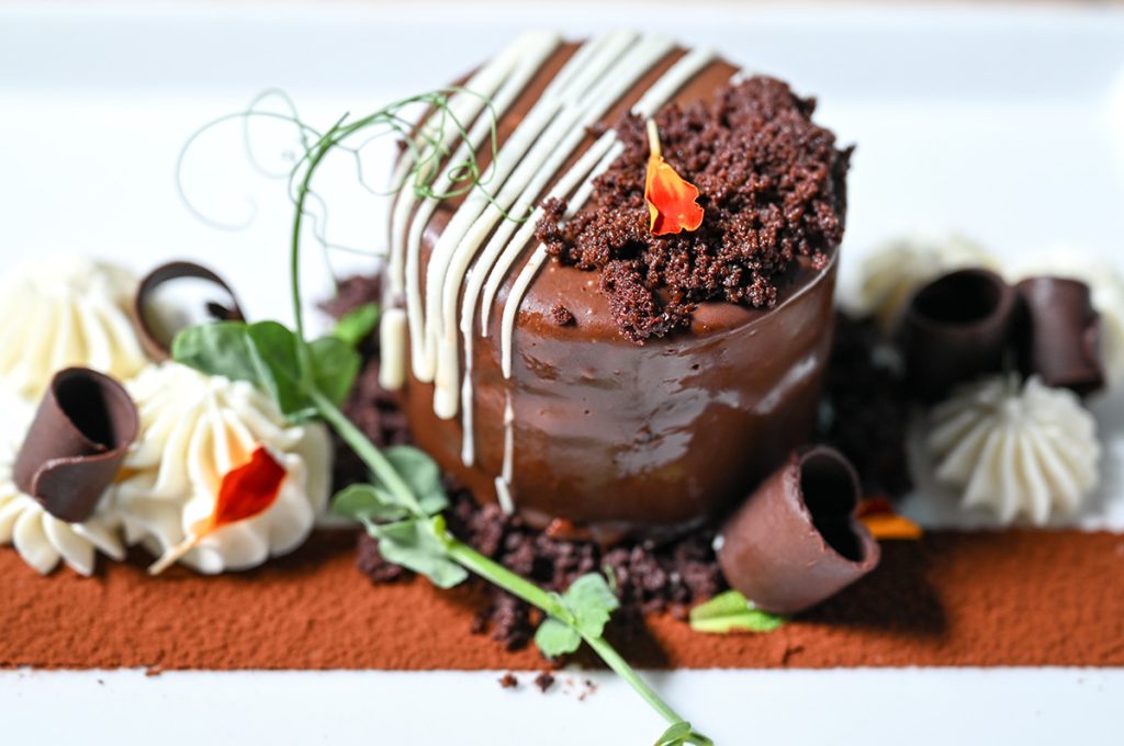 Desserts here vary with the seasons, but there’s usually a signature crème brûlée and heavenly macarons. This evening, I tried the Chocolate Mousse Cake ($12). It’s an indulgent dessert of white and dark chocolate mousse and vanilla nougat that reminded me of a flourless chocolate cake and a chocolate mousse bombe combined into one decadent, gooey, round, sweet treat—another surprising take on a dish that left me satisfied and excited to come back again for more delightful curveballs.