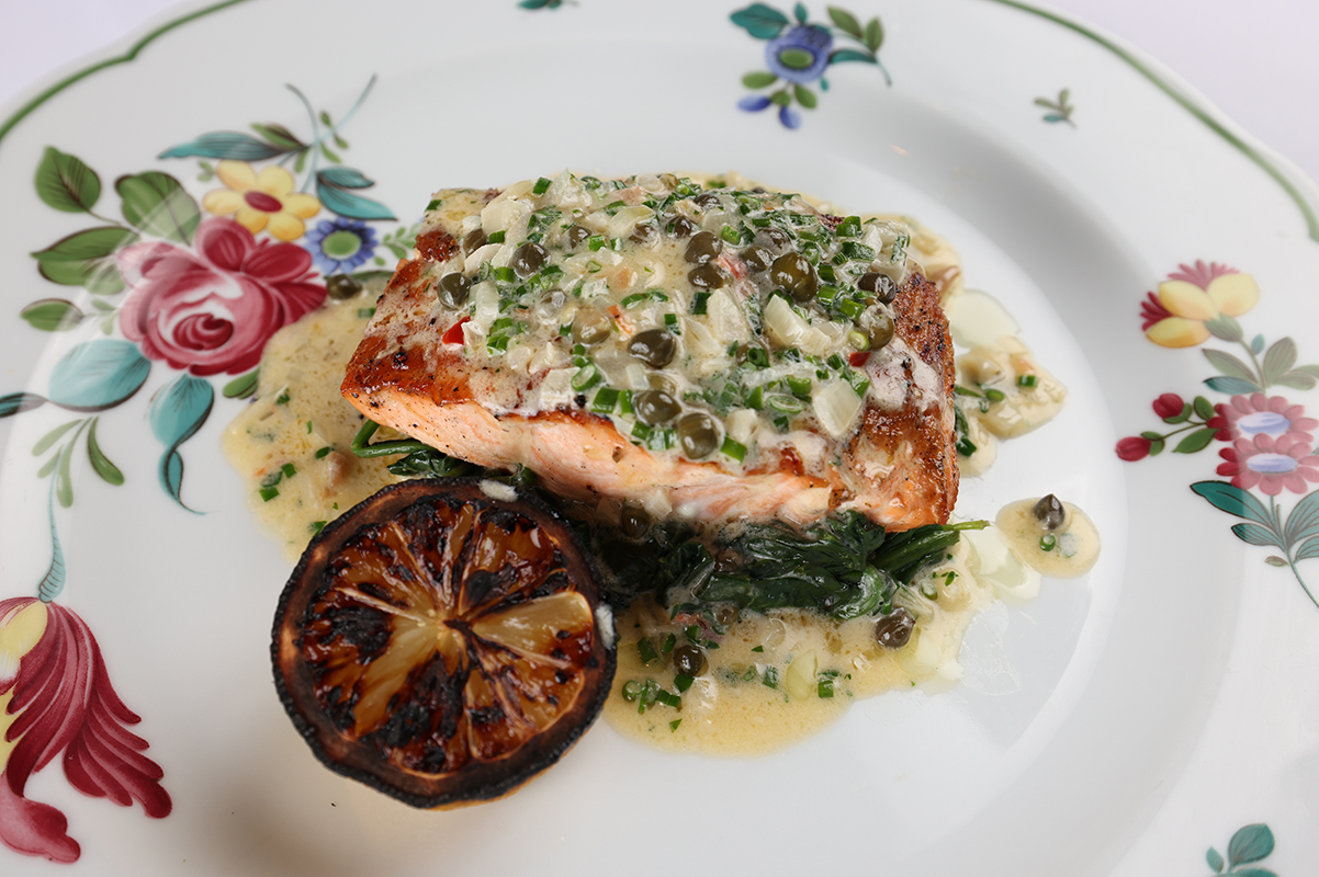 Campi’s design is reminiscent of the former tenant, most noticeably in its still-swanky bar and plush rattan booths. New rectangular glass chandeliers illuminate the space, and crisp white tablecloths adorn the tables. Windows are now dressed in thick ivory drapes, and the once-open kitchen is partially hidden behind them.