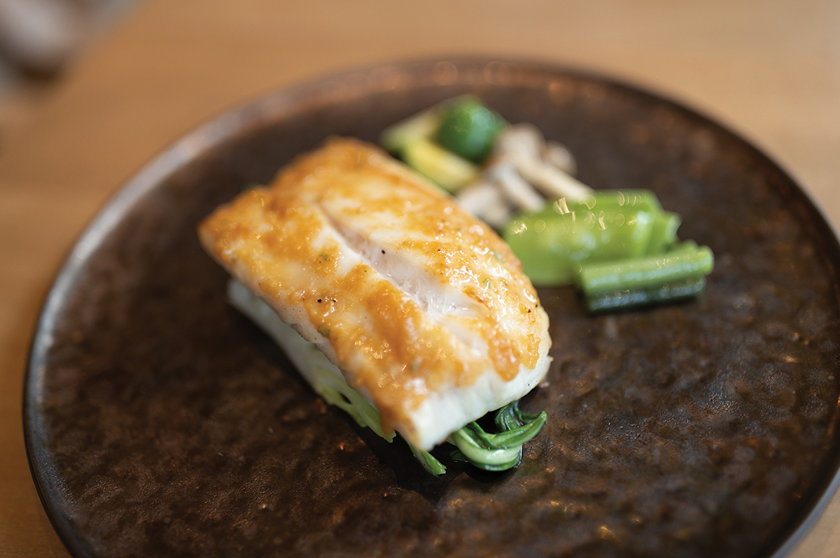 The larger, main entrées are limited, but I was pleased to see pompano ($32) on the menu. While we’re surrounded by water, I see more branzino on menus than any local fish. So I tried the moro miso-crusted local fish and paired it with the Beef Short Rib Fried Rice ($29). The pompano was simply plated with a lovely sear that allowed the flavors of the fish and moro miso (a fermented food made of soybeans with a salty umami flavor) to come through. Every forkful of fried rice delivered fluffy kernels blended with egg, carrots, edamame and tender short rib.