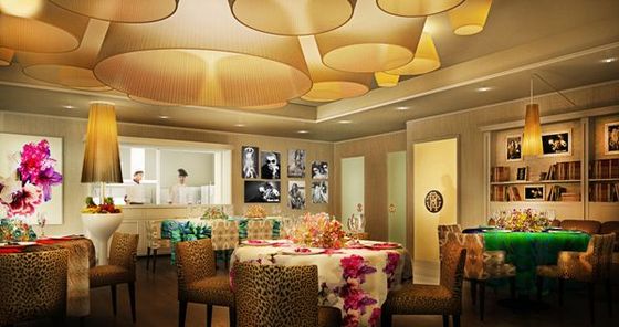 The restaurant will boast furniture from Cavalli’s home collection – think animal print chair covers, floral tablecloths – and serve items like lamb osso buco and Mediterranean octopus.