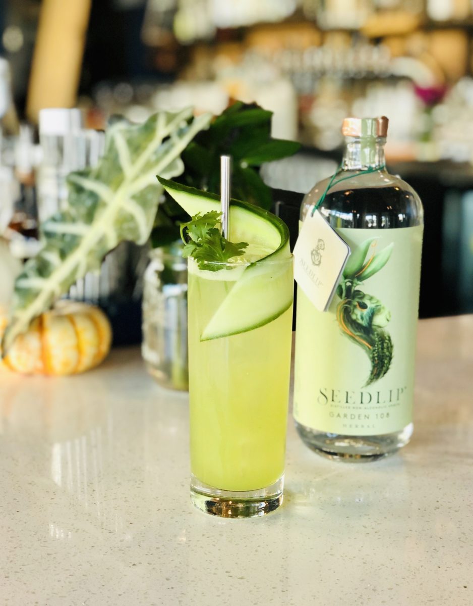 • Parched Pig, 4580 Donald Ross Road, Palm Beach Gardens; 561/360-3063; http://www.thecoolpig.com/ With great cocktails for the holidays (for example, the Mele Kalikimaka, $14, with Blackwell Dark Rum, Laird’s AppleJack, spice infused Aperol, pineapple/lime juice, cinnamon syrup, Peychaud’s and cinnamon bitters) – there are also some beautiful, refreshing mocktails here, including the Non-Cumbersome ($10; pictured above), with nonalcoholic botanical Seedlip Garden from the UK, cucumbers, cilantro, lime and brown sugar cubes, topped with soda water. You can’t miss.