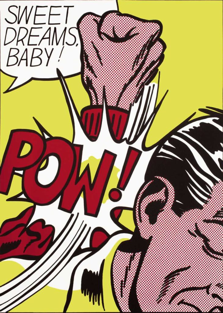 These include Ed Ruscha, with his droll textual art; Jean-Michel Basquiat, with his signature crowned avatars; Roy Lichtenstein, with his comic-book onomatopoeia; and Keith Haring, his squiggly figures rendered in sculptural form, either fighting or making love, however you choose to see it. Diane Arbus shows us a revealingly voyeuristic look at a boxer practicing in a New York City gym; and from Andy Warhol, we have a silkscreen of Ali with a blue superhero fist, transforming its subject into a cultural meme before we had the word for it.