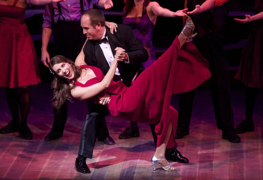 The production features 12 dancers and two credited singers—Michael Ursua and Alix Paige—though plenty of the dancers have the opportunity to showcase their pipes as well. There’s no story, but there’s a definitive structure, with the action beginning at the dawn of swing (1931) and continuing as various incarnations of the dance sweep the nation, first at nightclubs and then at military barracks. There are emotive torch songs and jazz crooning along the way, and pianist/musical director Paul Reekie leads the faultless six-piece band through the familiar toe-tappers and ballads. Though a few “characters,” if you can call them that, from Act One are revisited in the second act, it’s difficult to feel any emotional connection to the performances.
