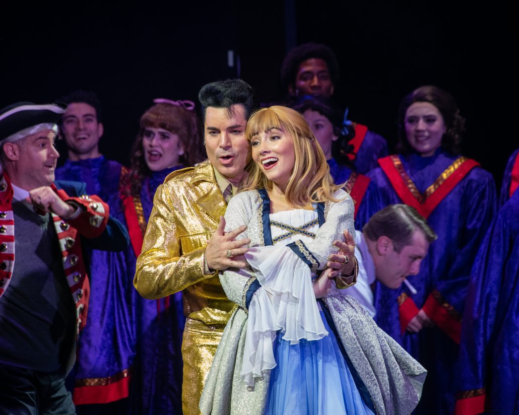 Likewise, Sessa, who has usually been seen in supporting roles in Wick musicals, proves she’s worthy of a leading actor’s spotlight, from the intricate footwork of the comically seductive “Shriner’s Ballet” to the script’s period repartee. (Whether this number has a place in the show at all is debatable.) As is expected, it’s hard to take one’s eyes off of Cole, an actor who has made a career out of embodying Presley (he acted in the Wick’s “Million Dollar Quartet” earlier this year), and is thus a perfect fit for the King’s charismatic avatar. Snedeker, in the familiar Mom From Hell archetype, is a marvel of comic timing.